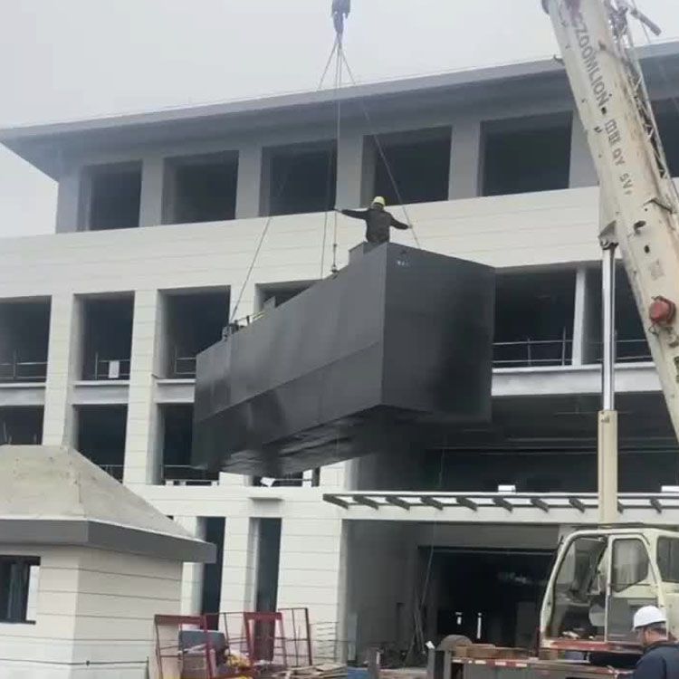 首页-发货现场四川宜宾8-2-2.5米一体化医院污水处理设备到货吊装就位